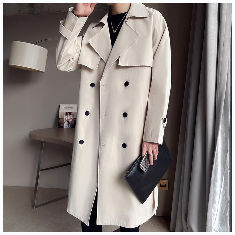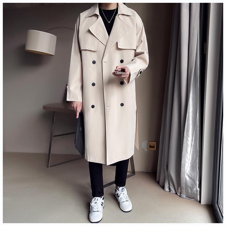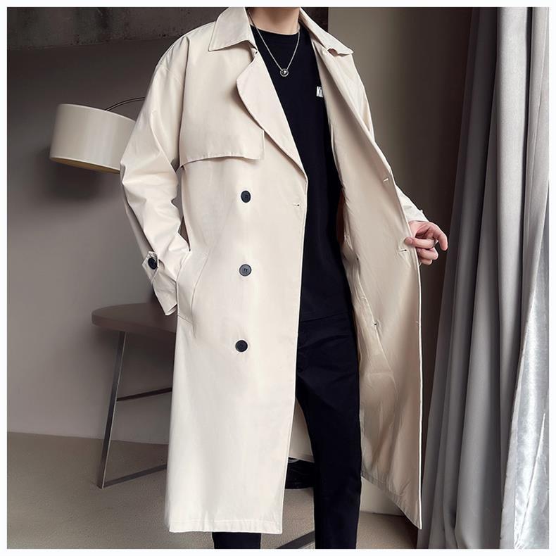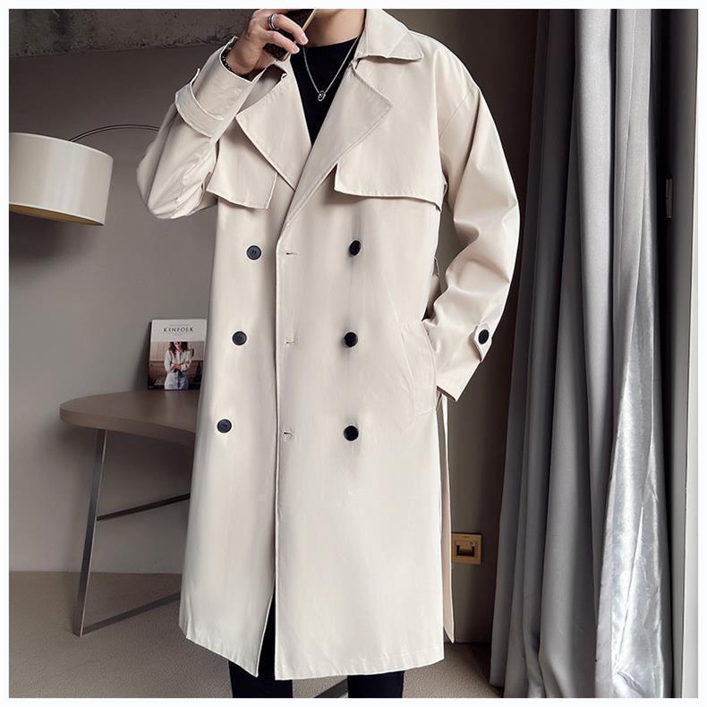 Beige Double Breasted Trench Coat For Men